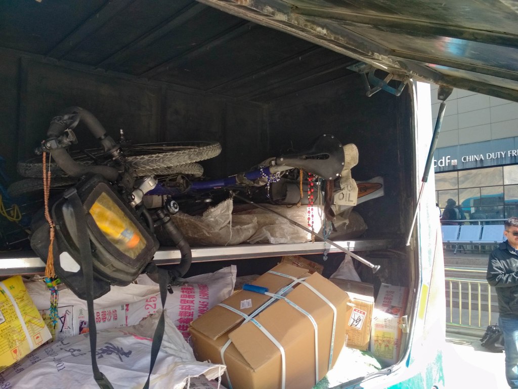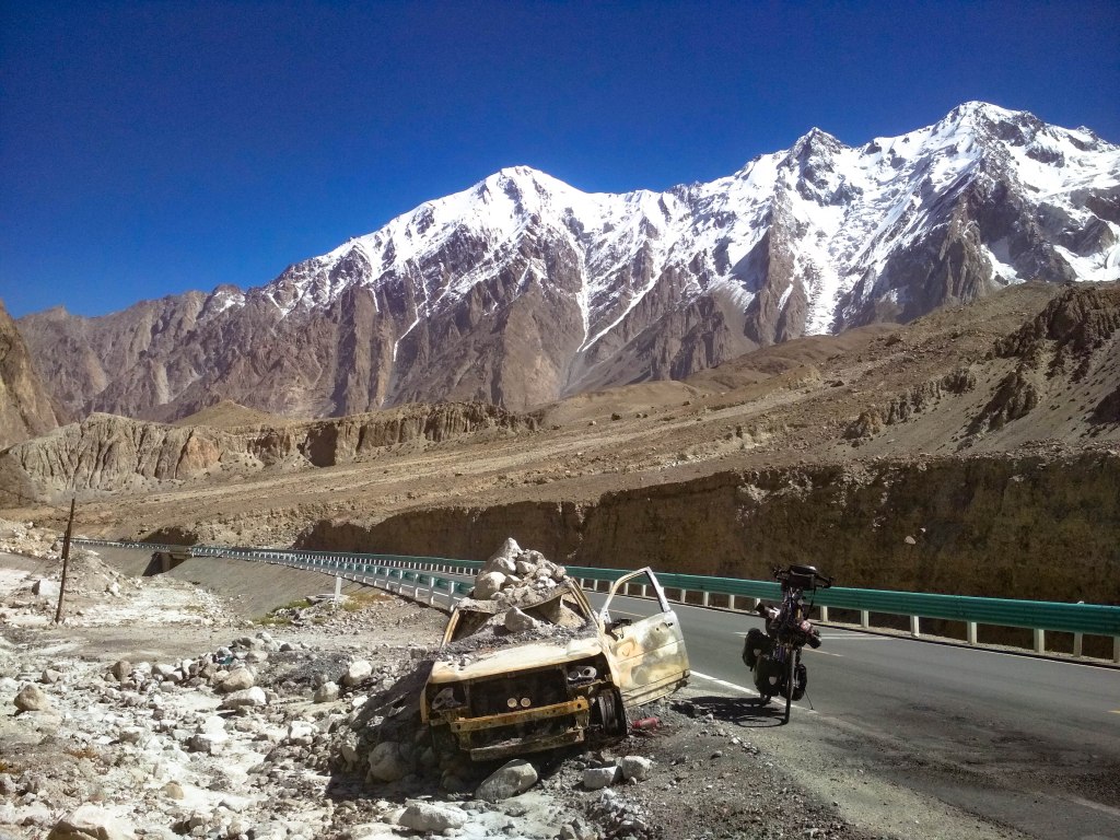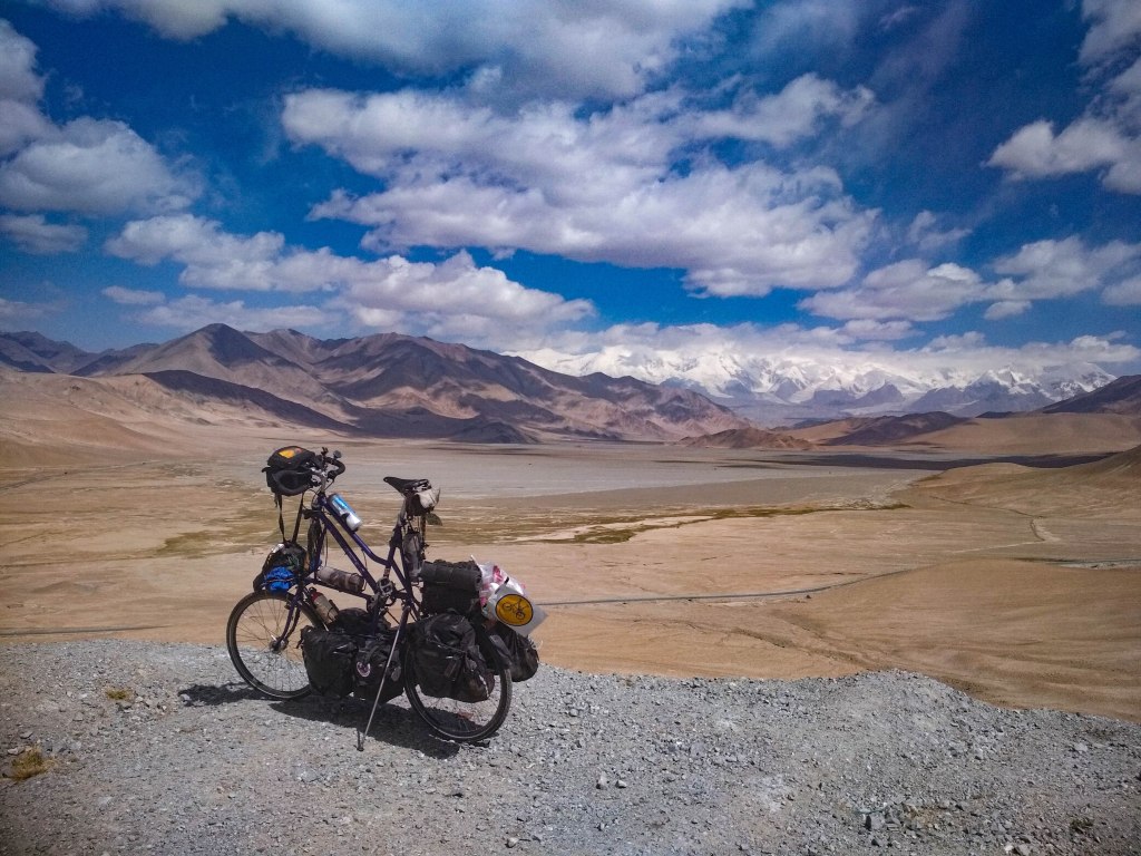 Entre estas cosas y los preciosos paisajes por los que transcurría, tuve una ruta mucho más agradable de lo que esperaba. Finalmente llegué a Tashkurgan el 5º día de mi ruta. De allí a la frontera con Pakistán aún hay 125km, pero es otra de las zonas que el gobierno Chino no te deja recorrer por tu cuenta. Pasé dos días en la ciudad descansando y poniendo mis cosas y a Vita a punto para el resto de la ruta y, al tercero, compré billetes para mi y para Vita (que también pagaba) y me fui a la estación de autobuses. Allí tuvimos que pasar el último control de seguridad (no creo que nunca llegue a pasar tantos controles en tan poco tiempo) y ya pudimos acceder a donde estaba el autobús. Era bastante pequeño y me tocó medio desmontar a Vita, con la ayuda de algunos pakistaníes, para meterla en el maletero de detrás, el único sitio donde cabía. También era viejo y muy curioso por dentro, con tres filas de una especie de literas en las que ibas cómodamente tumbado. Con una sensación agridulce (porque los últimos días habían sido muy buenos a pesar de la tensión que arrastraba) subí al autobús con muchas ganas de dejar atrás ese estado policial y más aún de llegar a Pakistán (del que ya dije que me habían hablado muy bien). Os dejo con las fotos!